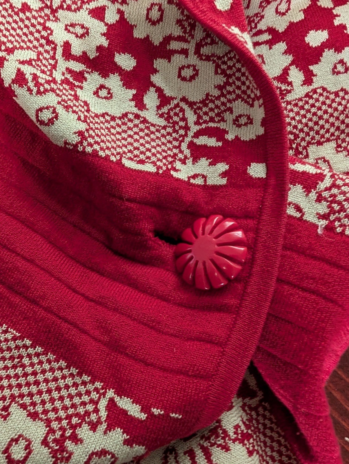Anthropologie Moth Red and Tan Floral Knit Cardigan Sweater With Button Small