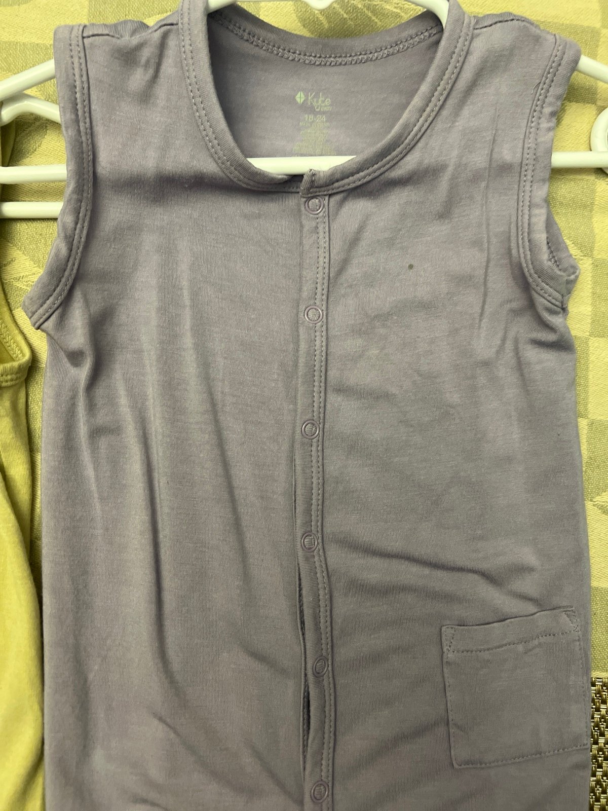 Kyte baby 18-24 jade and taro sleeveless romper. 3T wheat sleeveless one piece. All in good condition tried to get close ups of any thing I noticed small mark on taro right front but small- can separate and take additional pics if anyone is interested. Just trying to finally get rid of all the bamboo my girls have outgrown.