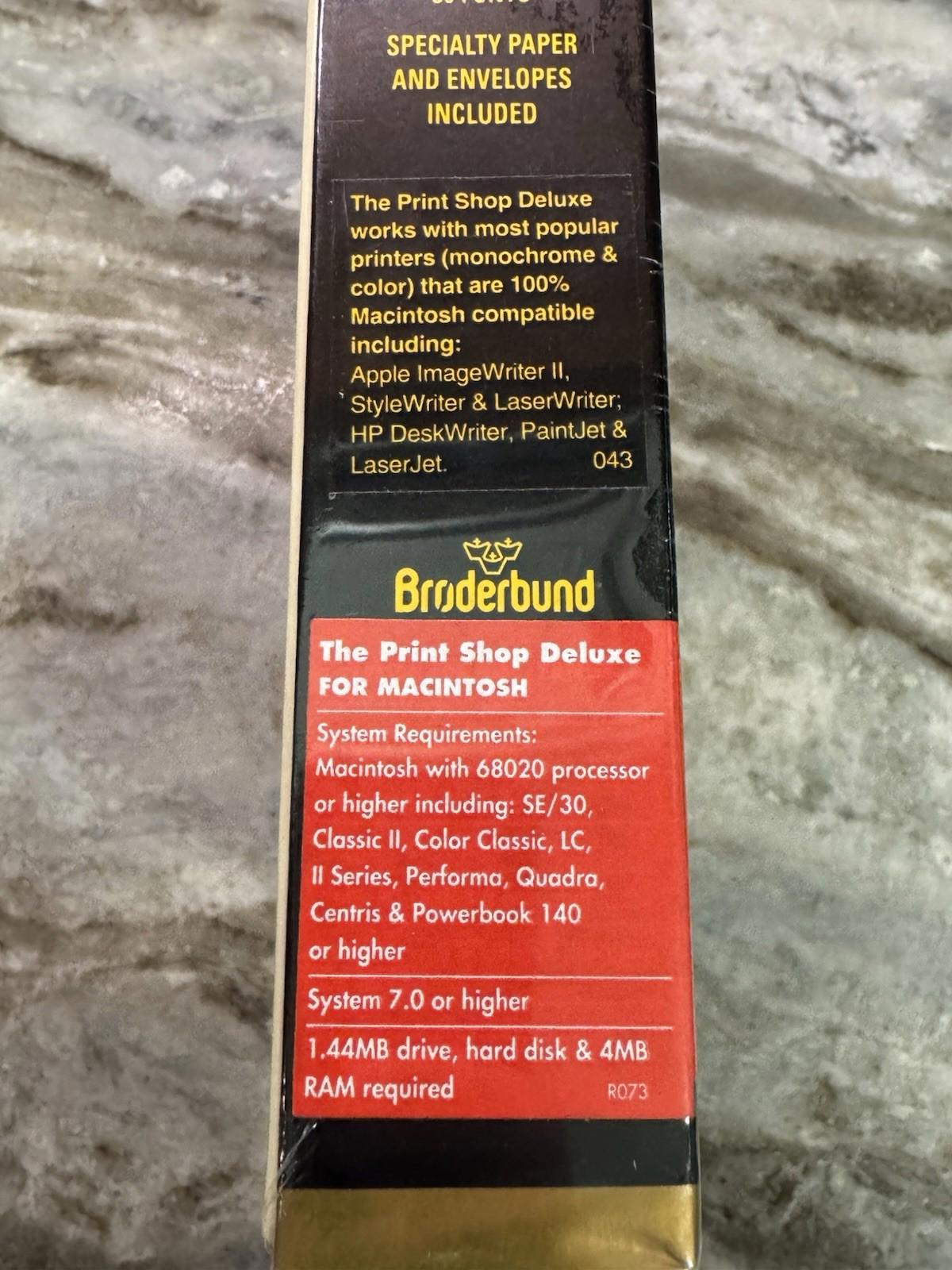 Vintage sealed copy of The Print Shop Deluxe by Broderbund for Macintosh.