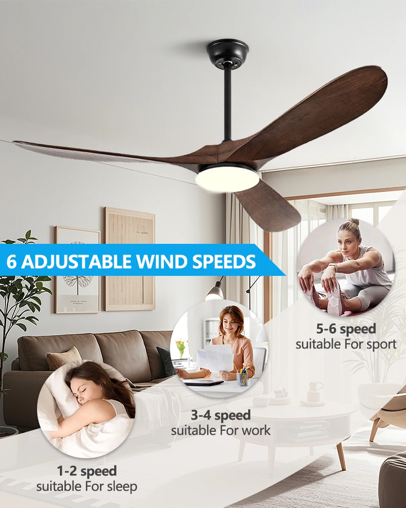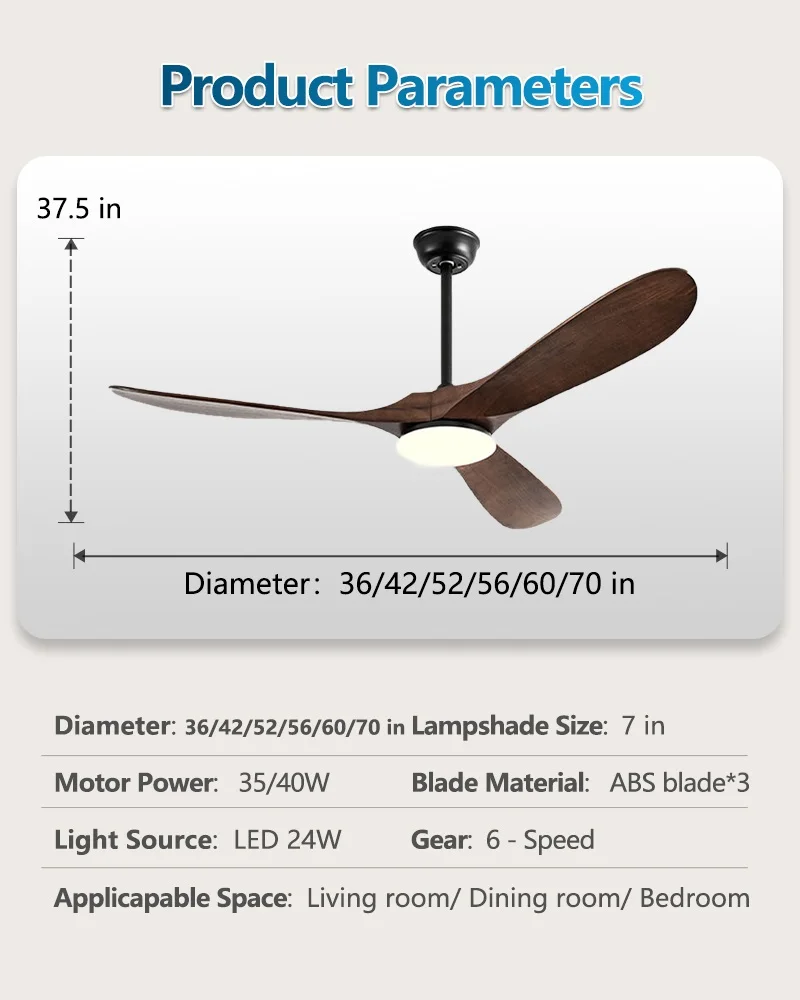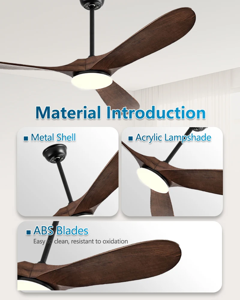 Lamp Body Material: Metal+Solid wood fan blades