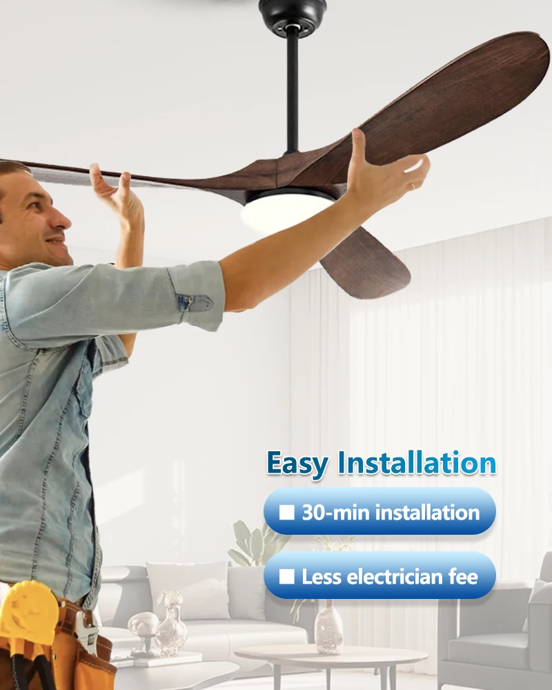 **- Number and material of fan blades: 3 solid wood -**