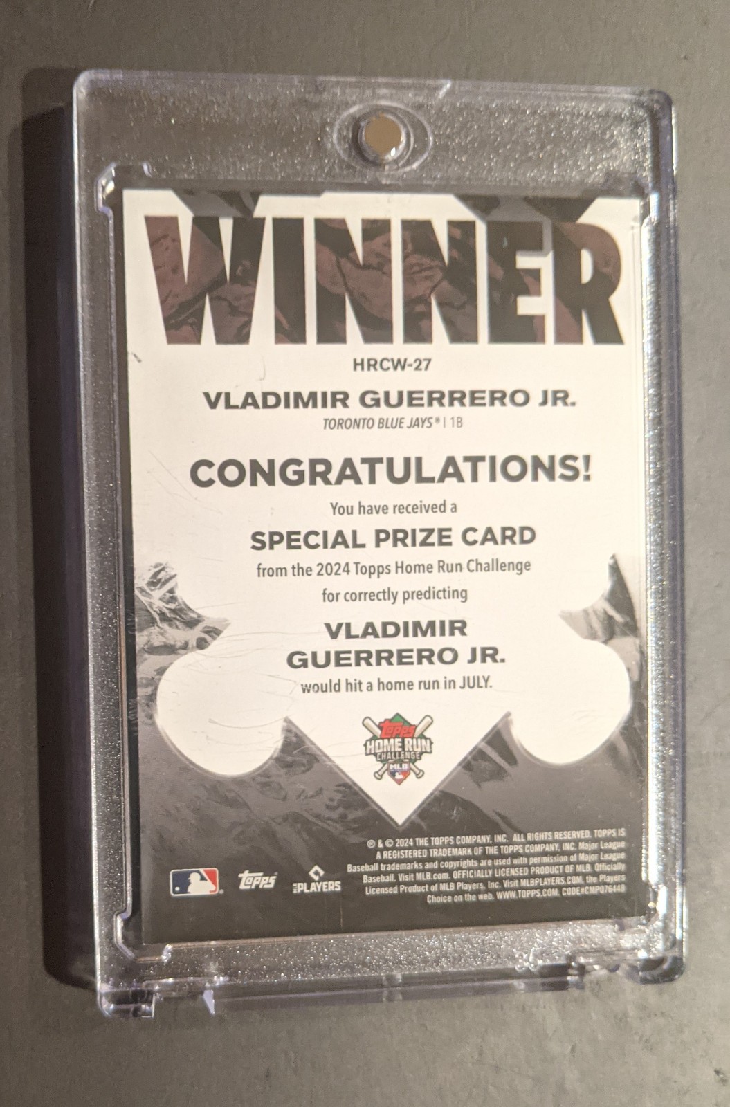 2024 Topps Home Run Challenge Redemption July Winner Redeemed Card of Vladimir Guerrero Jr. RARE Serial Numbered 445/478