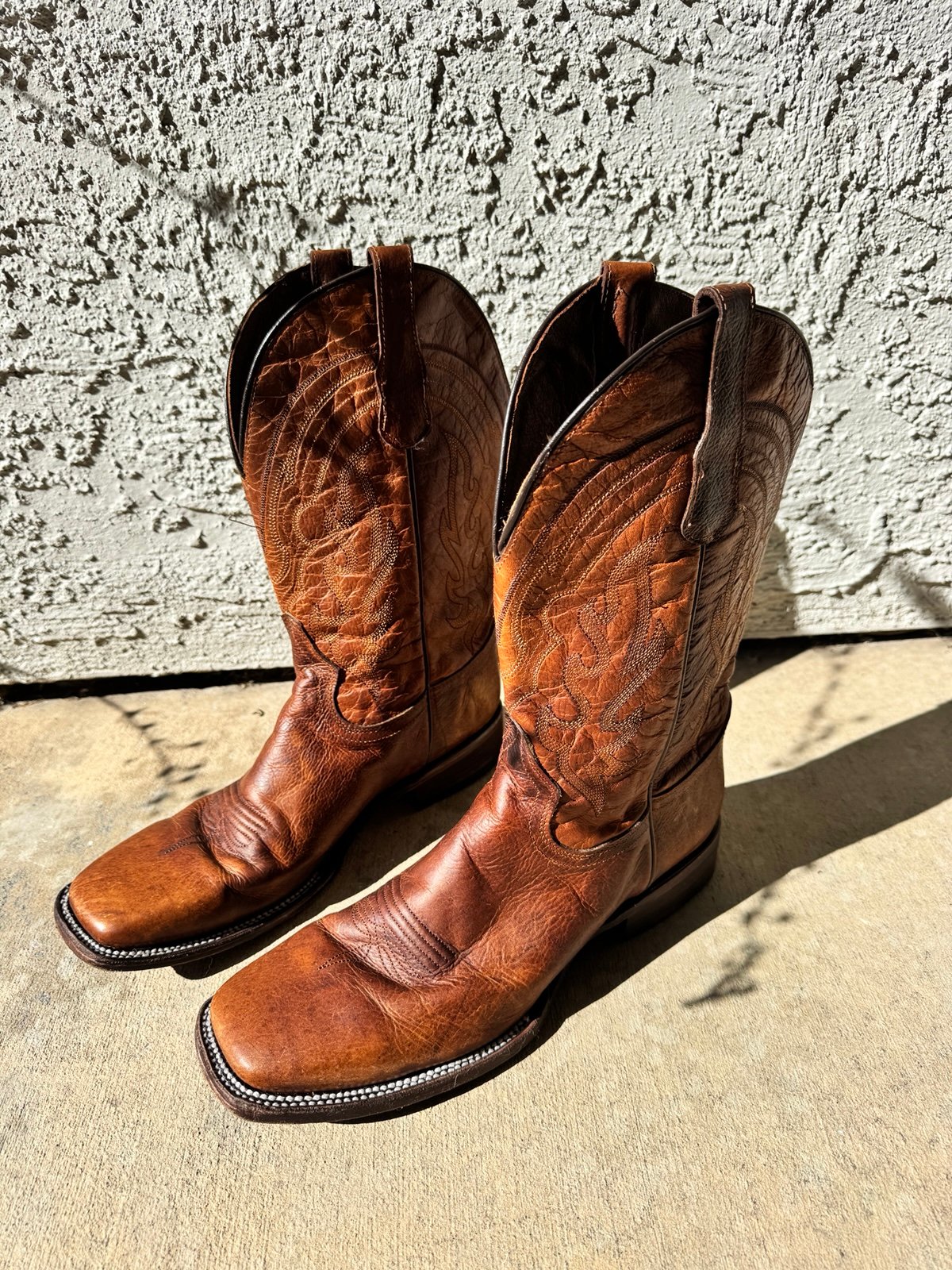 Very good condition, worn once, soles are slightly worn and there’s a small section of stitching coming apart on one of the side flaps.