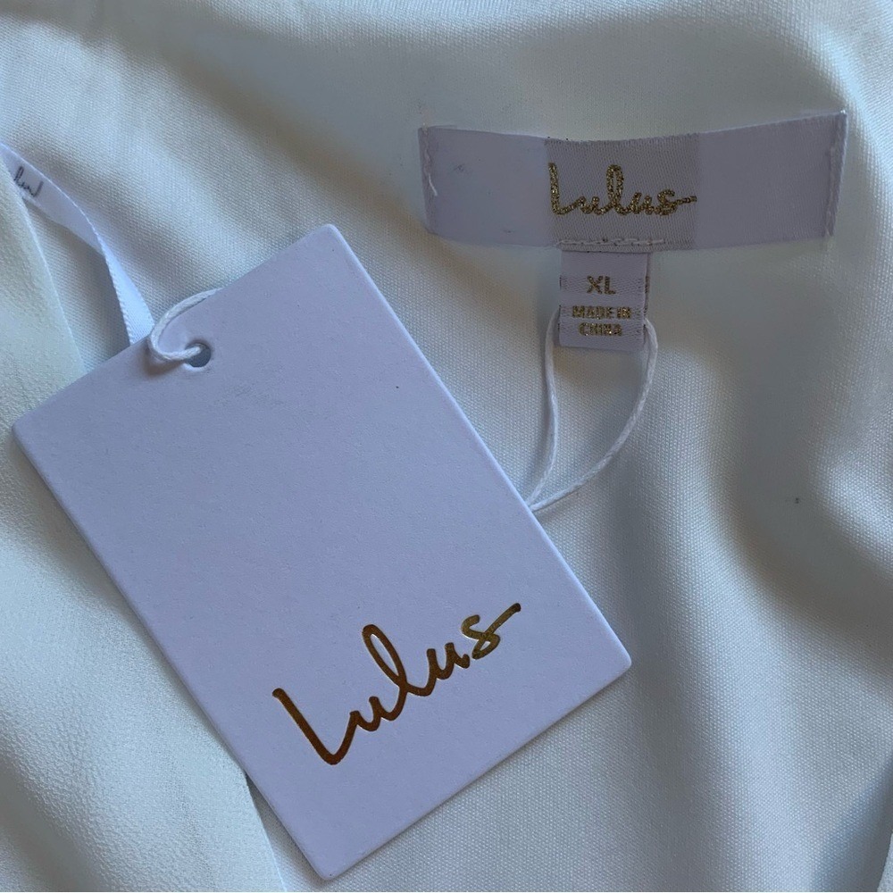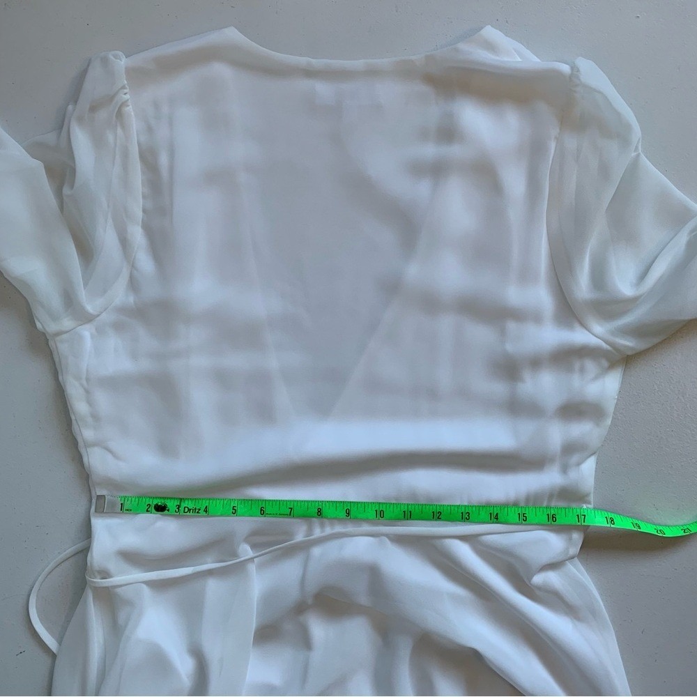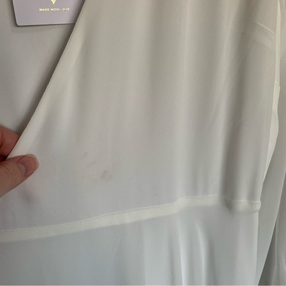 Brand new with tags, excellent overall condition with minor *flaws.* There is a dirt/dust mark on the front bodice + a small spot on one of the sleeves + run on the chiffon outer layer of the back skirt near the bottom hem. It looks like the marks will come out with a spot clean and the run isn't noticeable due to location. Please see pictures for full condition details.
