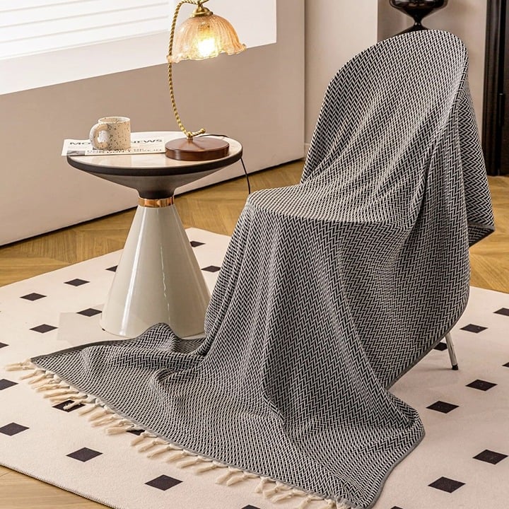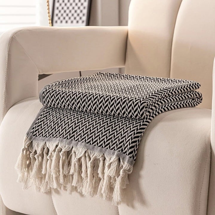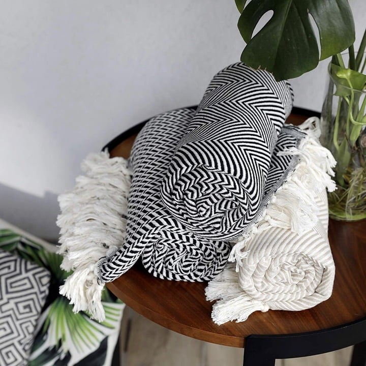 Striped, herringbone with nice tassels loomed with mix of three different color yarns to have this nice shade.