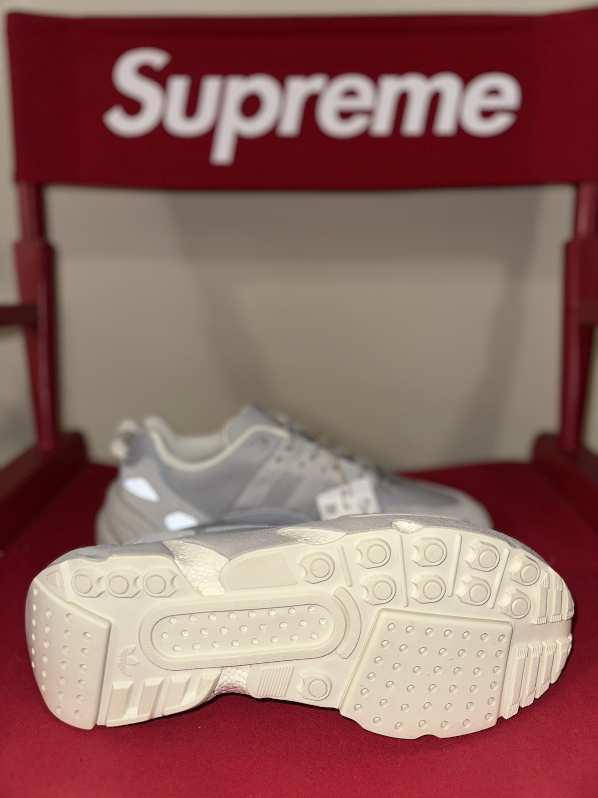The Adidas GY6698 ZX 22 BOOST Men's Size 9.5M Suede Running Shoes in Grey are a new athletic sneaker designed for running and jogging. With a low top shaft style, lace-up closure, and Boost character for cushioned comfort, these shoes are perfect for active wear occasions. Made with breathable suede material and featuring rubber cleats for traction, these Adidas ZX sneakers are a modern sports-themed addition to any man's shoe collection.