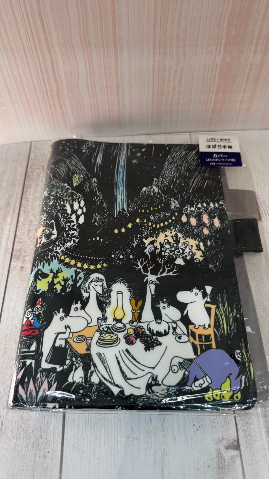 The entire cover is printed with an illustration from the novel Finn Family Moomintroll—a festive nighttime scene where Moominvalley’s residents have gathered for a grand party. Touches of gentle color soften the dark nighttime scene, giving it a soft, dreamlike quality. To capture the fine lines of the original artwork beautifully, used a tightly woven polyester fabric.