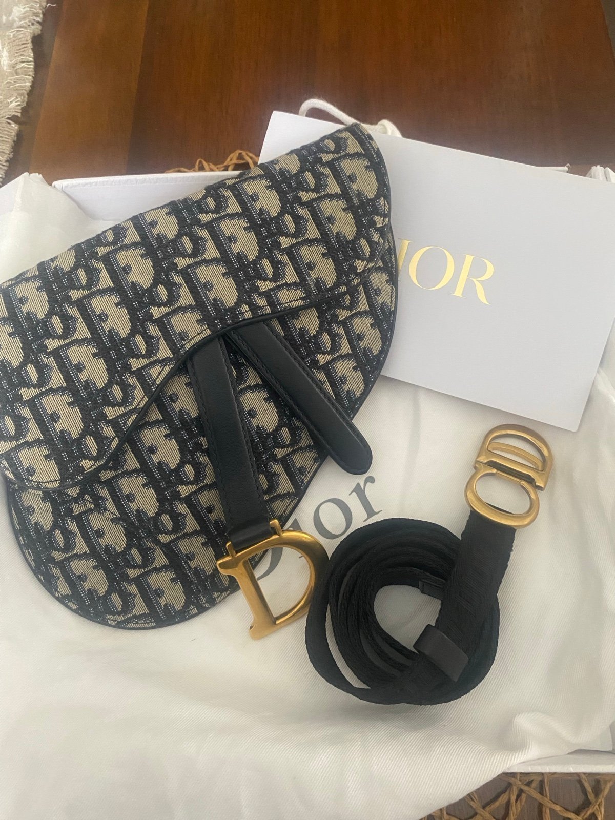 Beautiful preloved bag in very good condition. Interior clean but has some slight discoloration see last pic. The bag was not used and only stored See photos comes with dust bag and storage box as shown removable belt measures 39” in length you can add a chain to the bag and wear it as a shoulder bag and have a belt