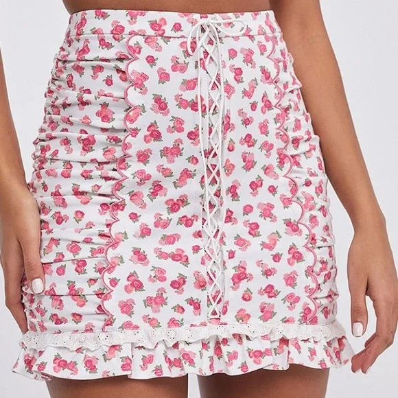 New to ? Get $10 off with code GOTTEMGOODS to sign up!Divine details are the stars of this sweet-as-can-be slip skirt, featuring embroidered scalloped edges, soft ruffles, and a lace-up front. Mini slip skirt Sizes Available: XS, S, MHigh riseScalloped edgesEyelet lace accentsShirred sidesLace-up front detailRuffle hemBack zip closureMATCHING BRALETTESizes Available: S, M, L