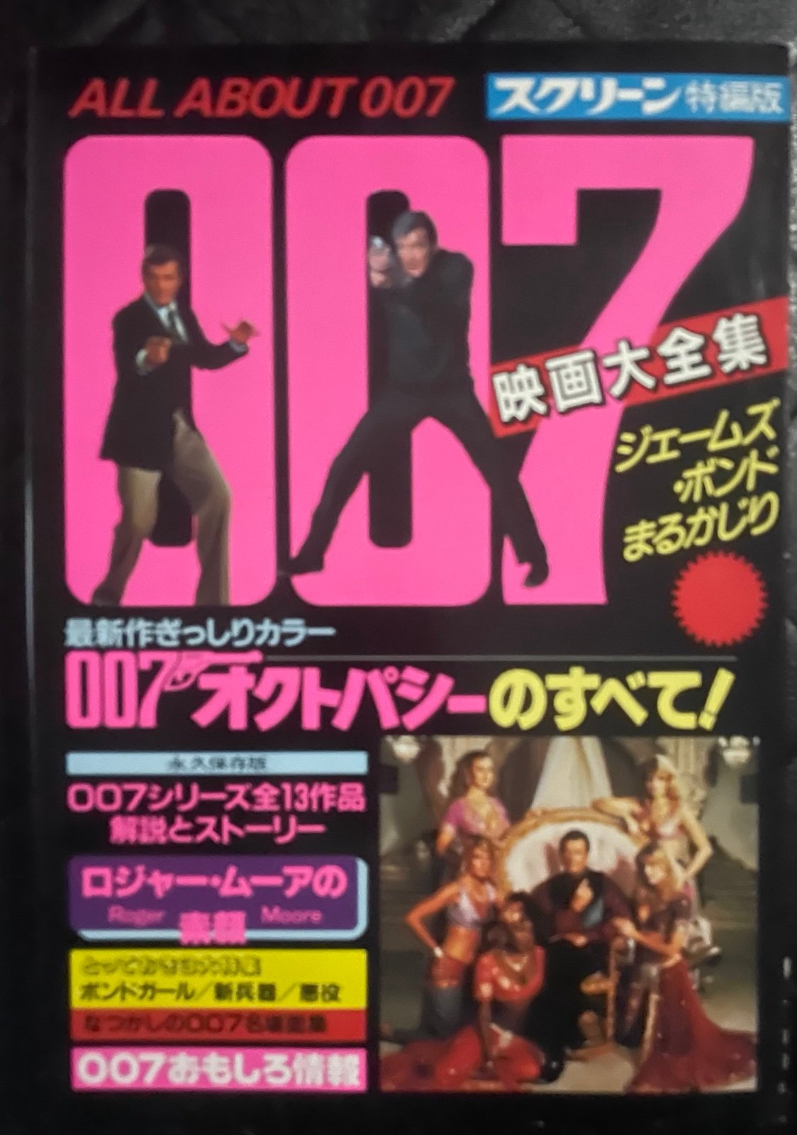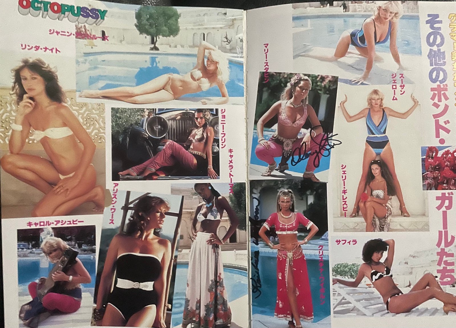 AUTOGRAPHED JAMES BOND "ALL ABOUT 007" Japan Import "Octopussy" Movie Book with Roger Moore cover from 1983. Signed by Bond girls.