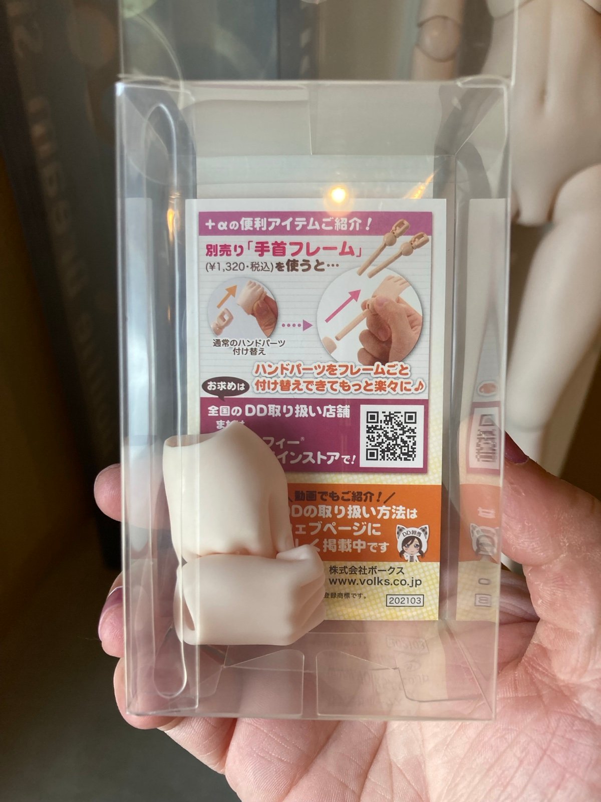 Includes main item, fist hands, peace hands and extra pegs for easy hand changing. Purchased directly from Volks USA website last year, displayed away from direct sunlight in nonsmoking home with a cat. No large stains, very tiny stains I did my best to photograph accurately. Some dust. Overall good condition, no significant damage but is a preowned item.