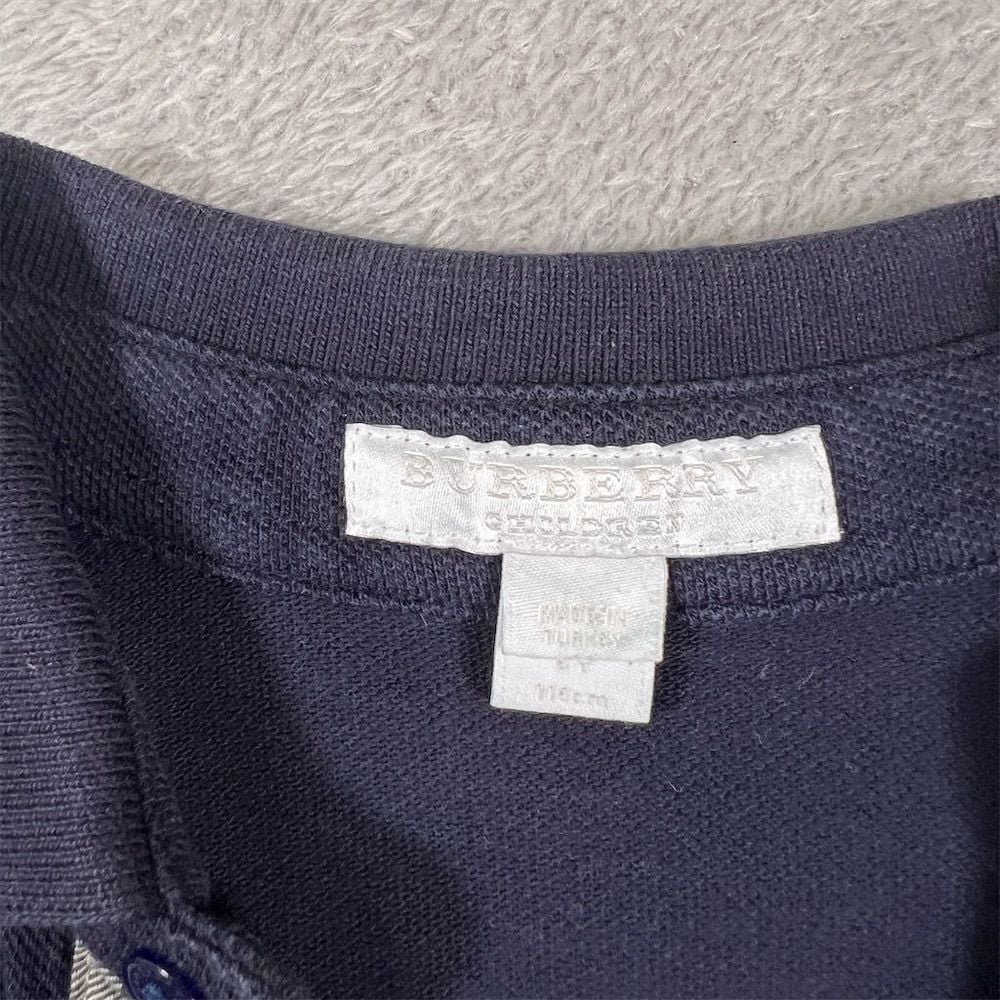 Burberry Boys Navy Blue Polo Shirt Nova Check Collar Size 6Y Preppy Casual