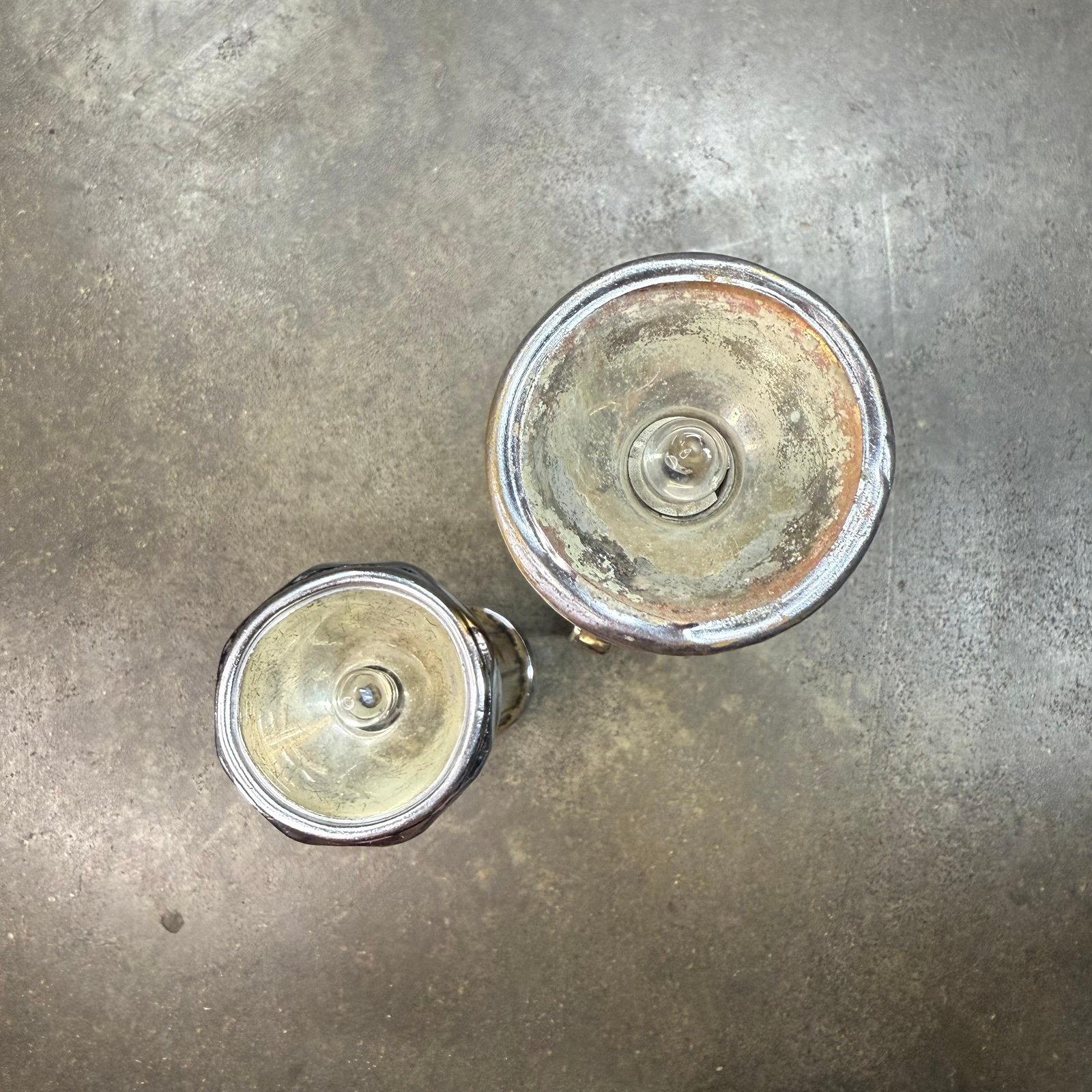 Both show age and patina with interior corrosion; assumed nonworking and sold as-is for restoration, parts, or display.