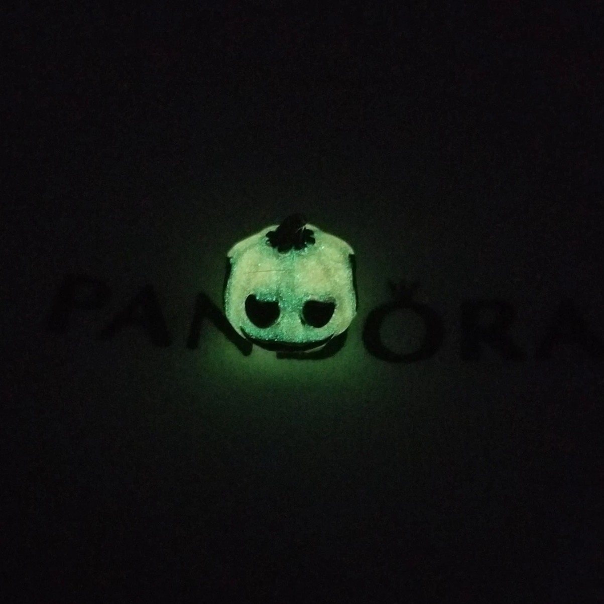 This delightful Glow-in-the-dark Spooky Pumpkin Charm in sterling silver is the perfect Halloween friend. Intricately detailed with a spooky face and heart-shaped eyes, this enamel-painted charm turns dark green when the lights go out - as if by magic. Get into the spirit of the scariest time of year by combining it with other holiday charms for a stylish Halloween look. Comes with jewelry pouch!