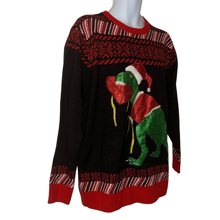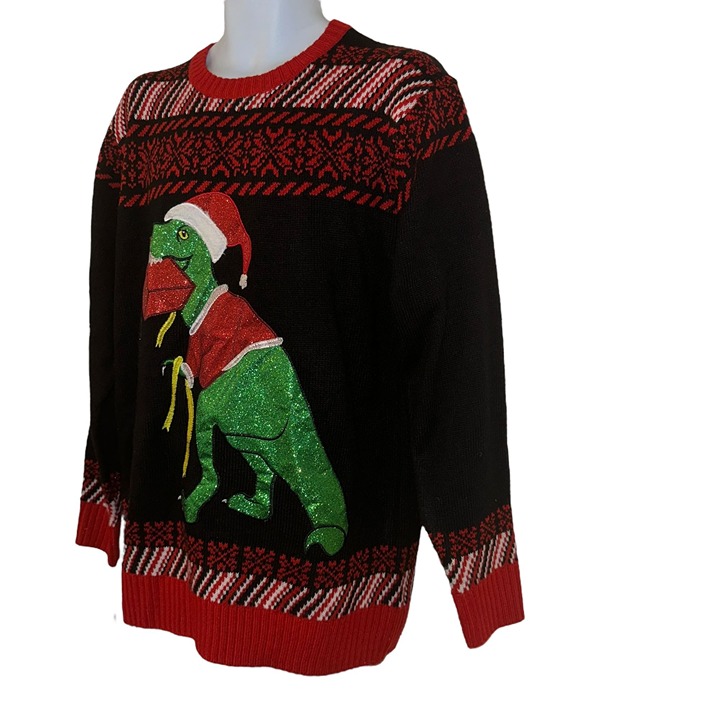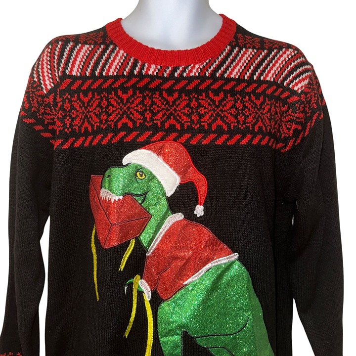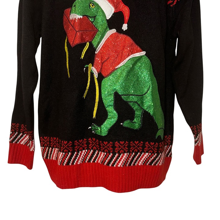 • Features: T-Rex carrying present, Metallic, Embroidered
