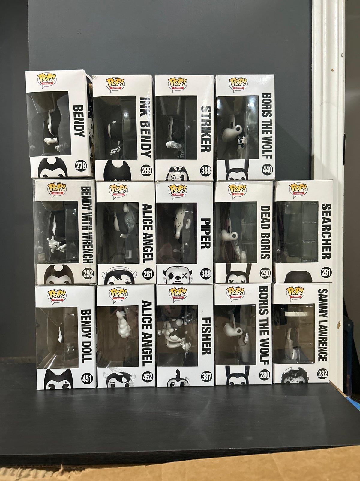Selling my set of Bendy and the ink machine Funko pops, all are in great condition and come from a smoke free home. I’m selling because I need to downsize my pop collection. Thank you for looking! :)