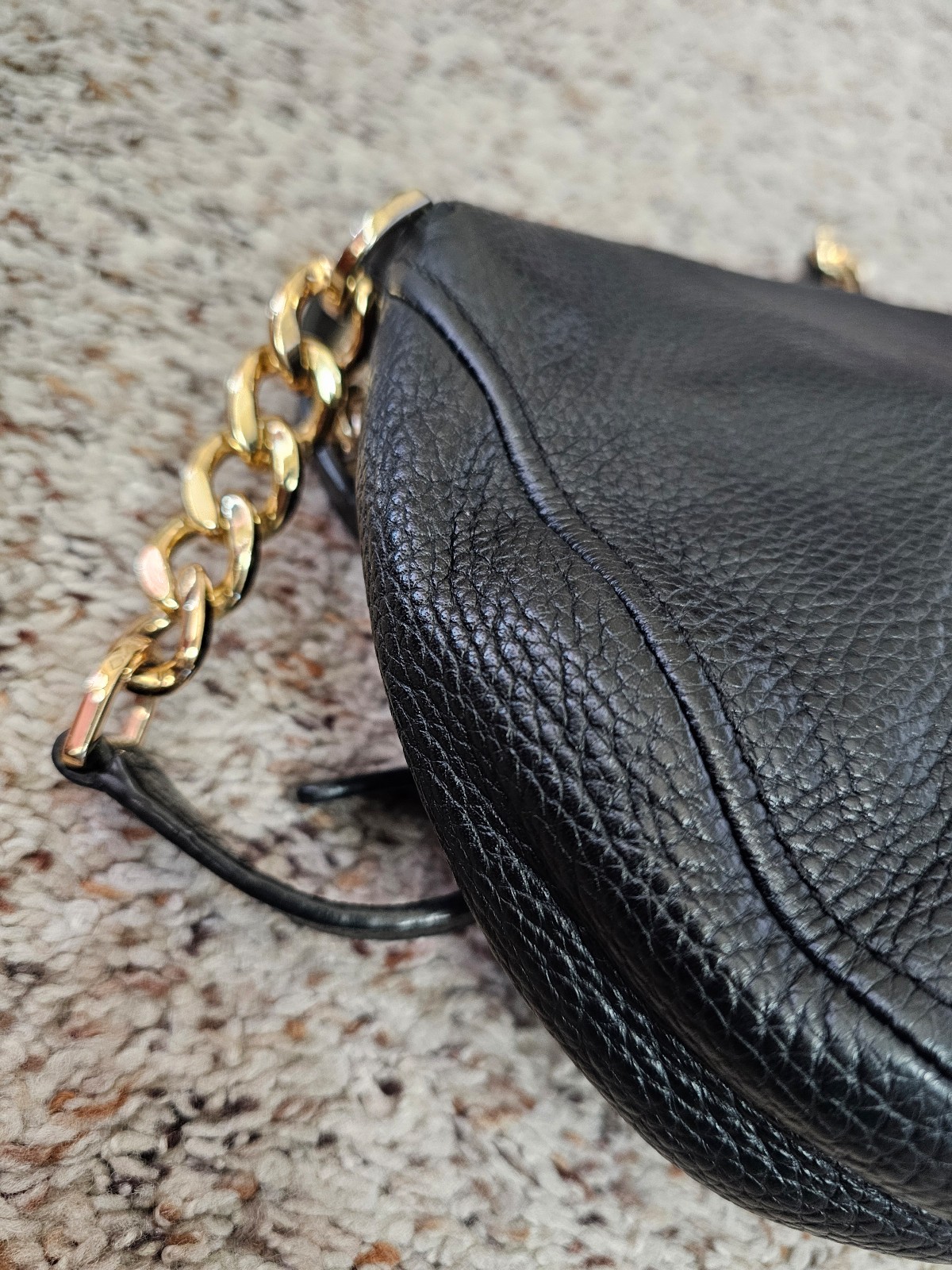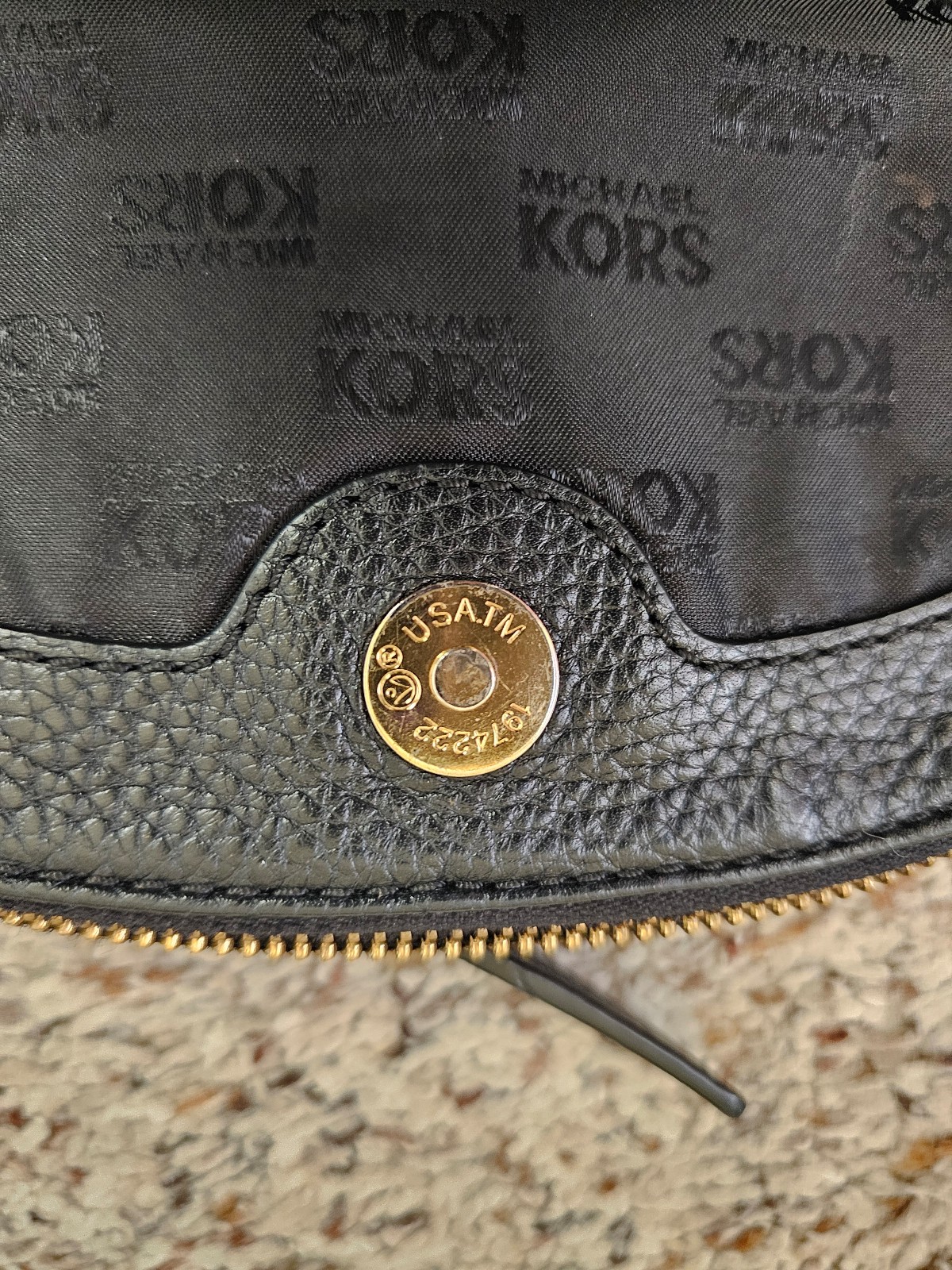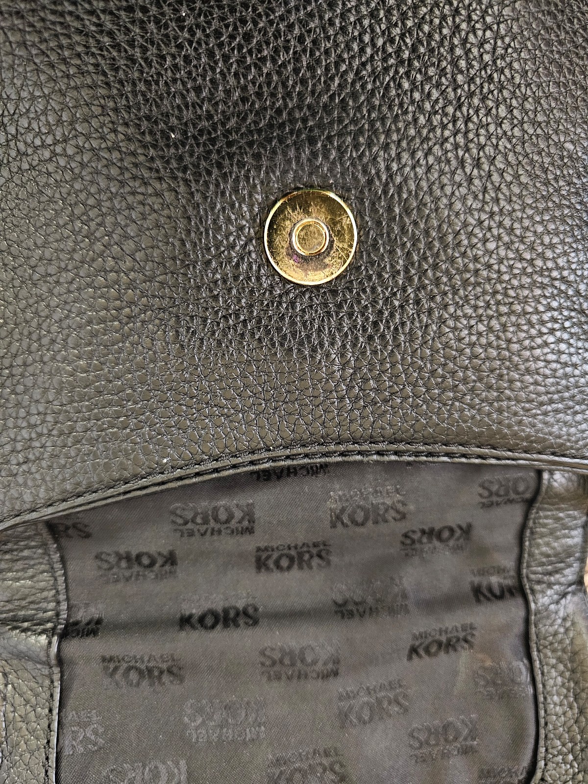 Michael Kors Black Bedford Flap Crossbody Bag Pebble Leather Gold Hardware