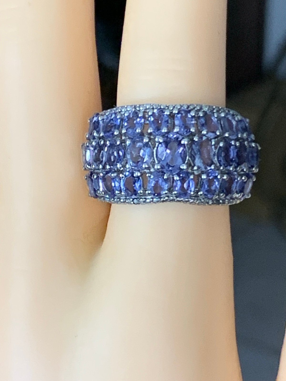 Signed STS Genuine Tanzanite Platinum Over 925 Sterling Silver Cluster Ring - 9