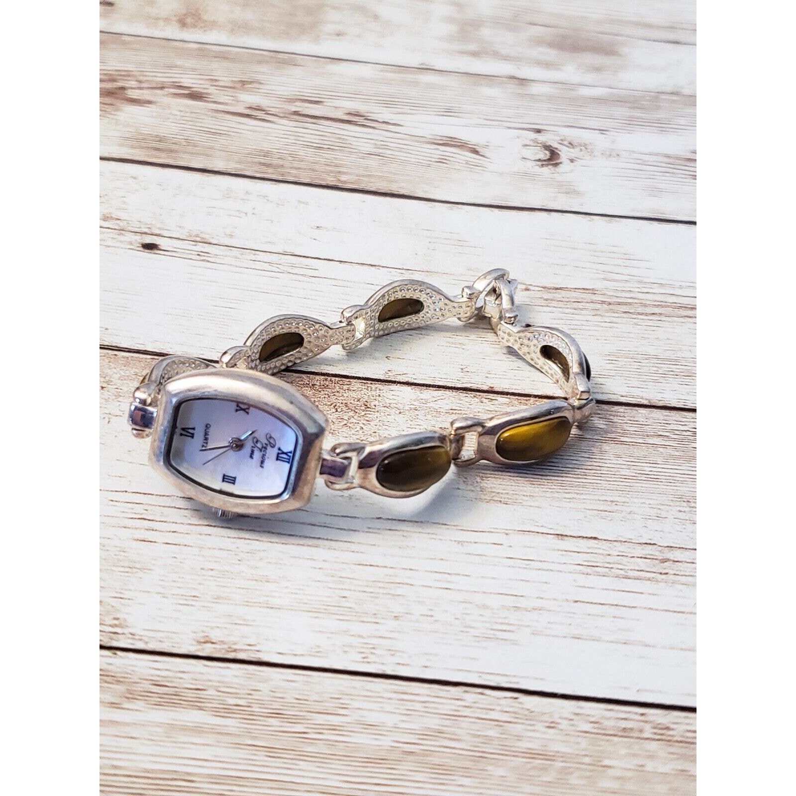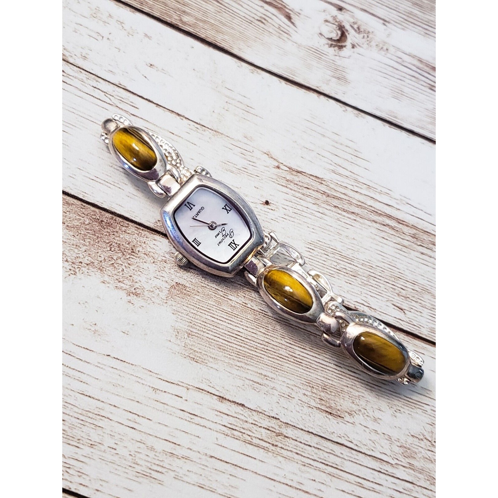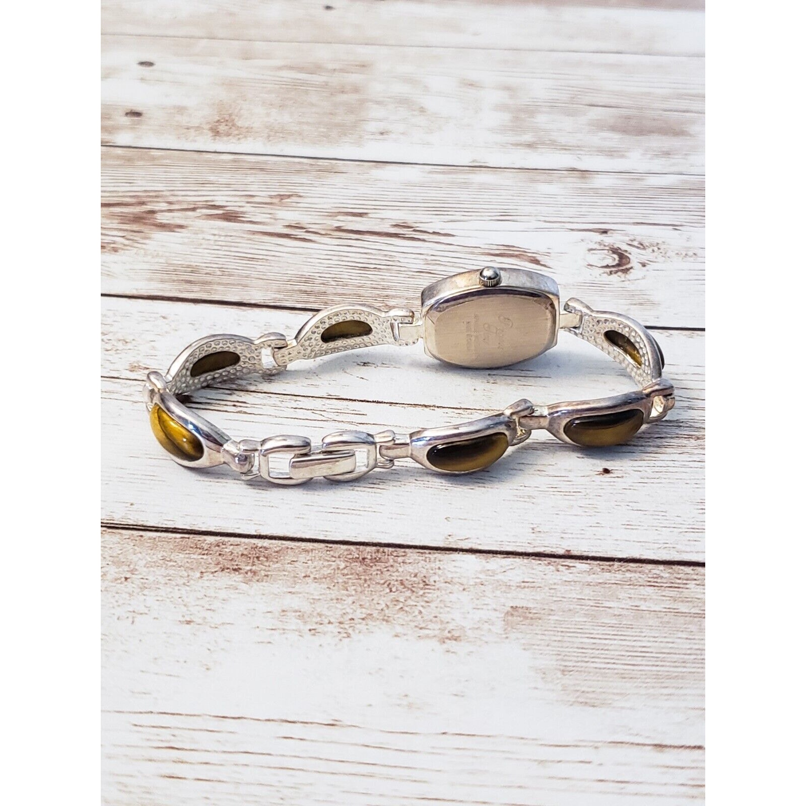 Vintage Precious Time Watch 925 Sterling Silver/Tigers Eye - Needs New Battery