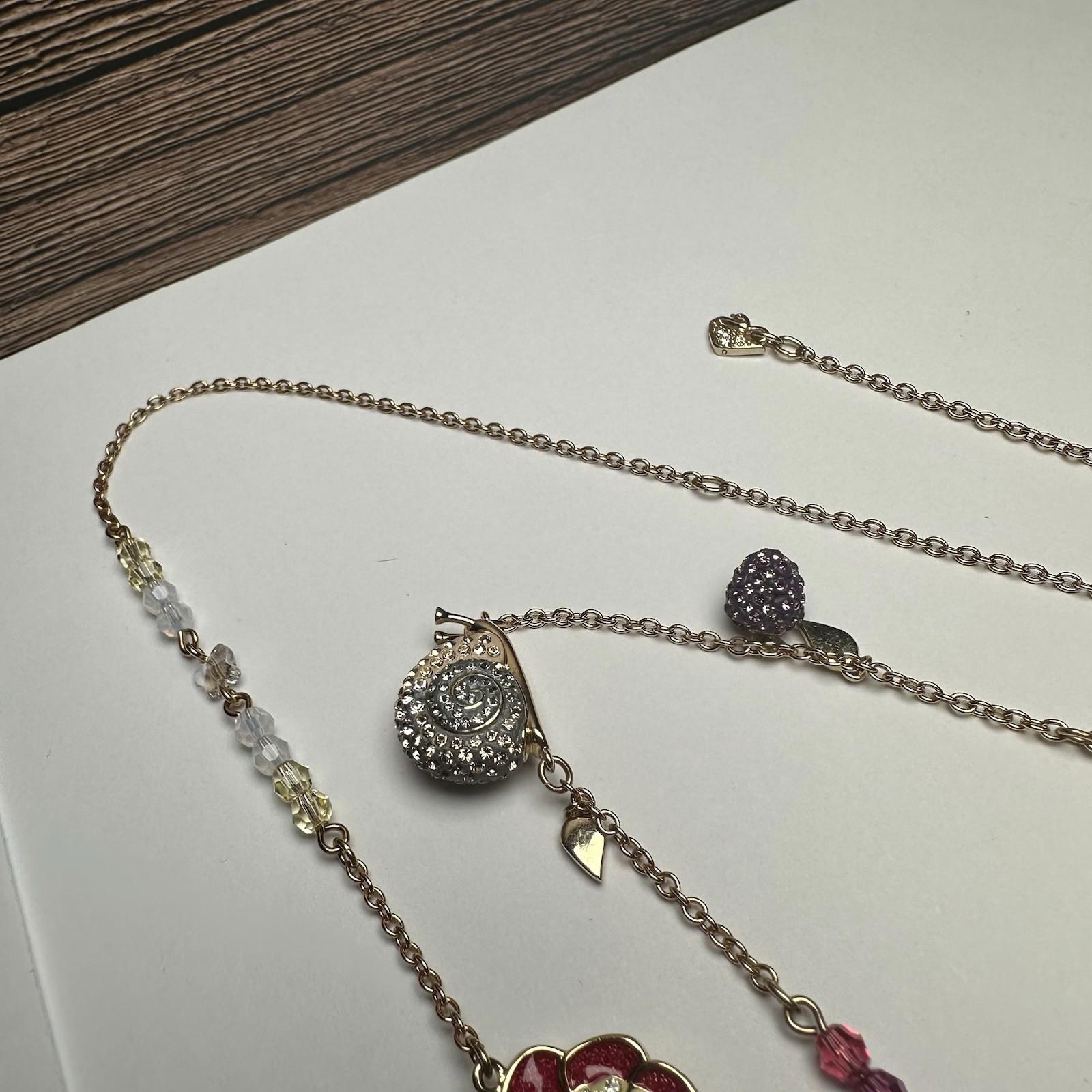 Pre-owned in good condition. All stones intact. Some small scratches to the metal backside of some of the flowers. Swan mark on clasp hangtag and on the back of the pendant. Also a really tiny swan mark on the bee. Part of the Swarovski Noisette line.