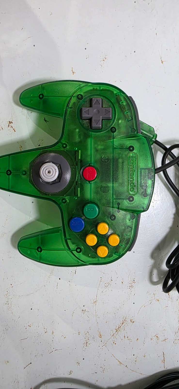 The Funtastic Jungle Green Nintendo 64 Console is an authentic, tested, and vintage gaming system that offers a nostalgic gaming experience. With its retro design and component RCA connectivity, this home console allows users to enjoy classic Nintendo 64 games in a vibrant green color scheme. Made in Japan in 1999, this console has a storage capacity of 32 MB and supports a resolution of 480p, providing a visually immersive gaming experience for fans of the Nintendo 64 platform. Ideal for collectors or retro gaming enthusiasts, this console is a must-have for anyone looking to relive the glory days of gaming.