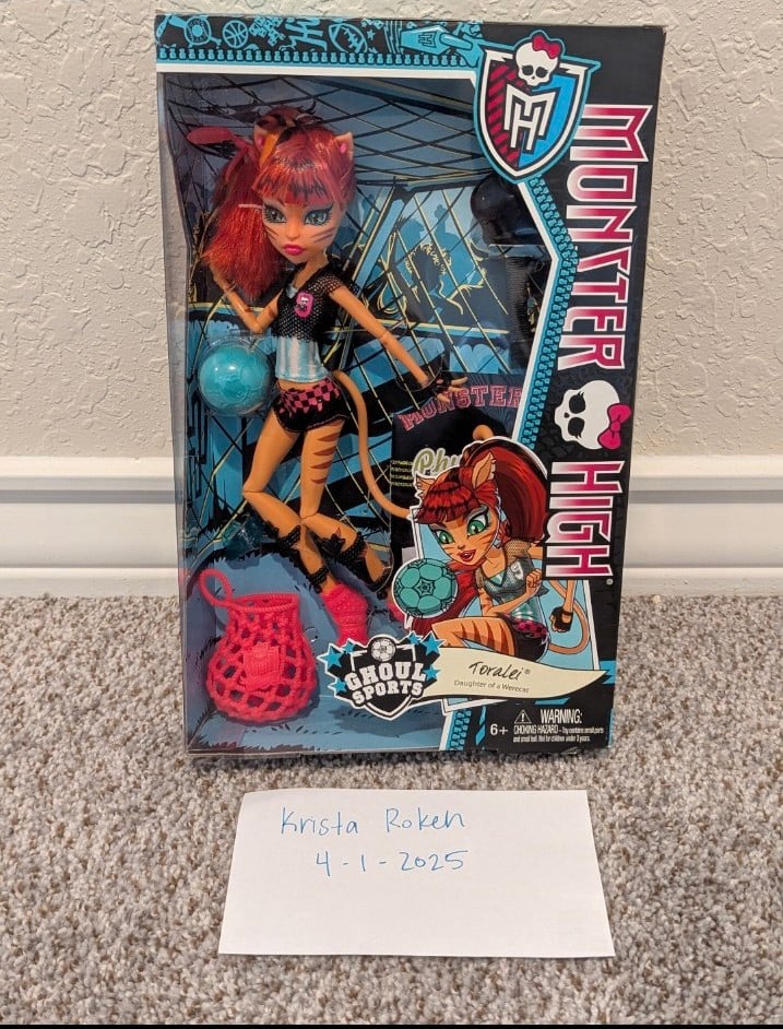 Authentic Monster High Ghoul Sports Toralei Stripe doll, still in original packaging. Box shows only minimal shelf wear (see photos). Doll and accessories untouched and in excellent condition. Great addition for collectors or fans of the Ghoul Sports line!