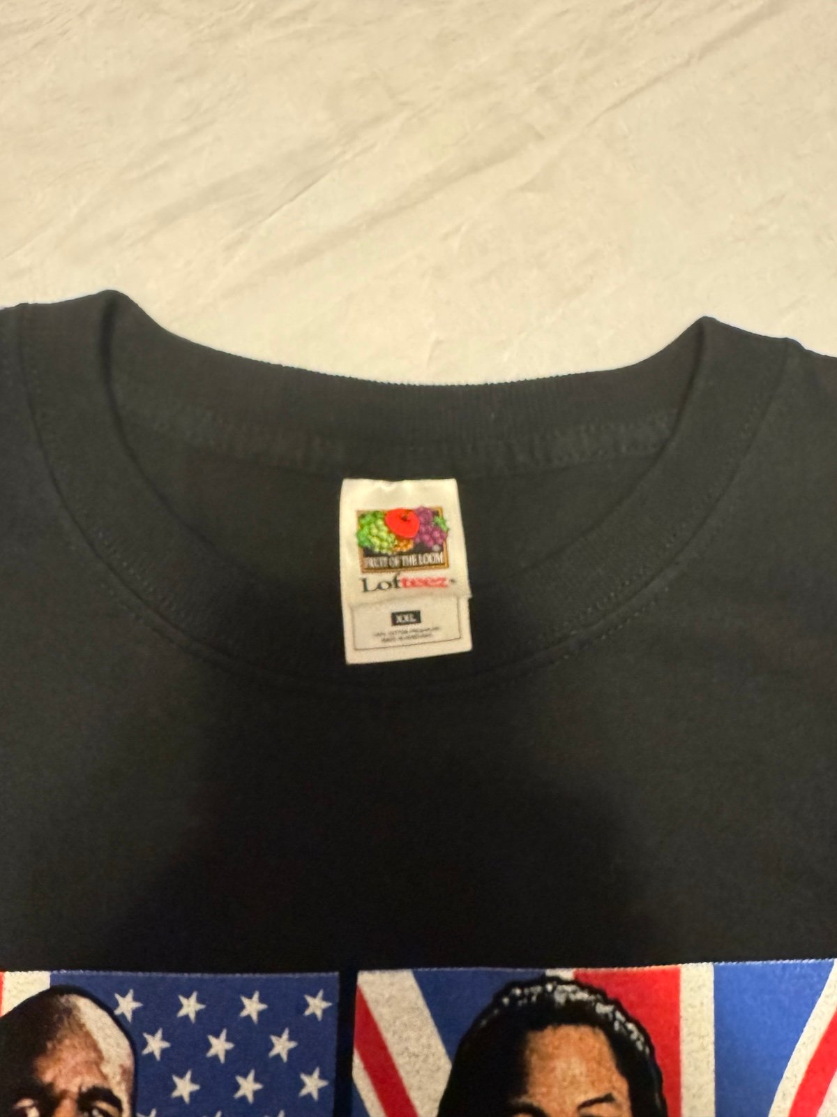 The Holyfield vs Lewis 1999 Unfinished Business Search for the Truth Shirt in size XXL is a vintage piece of men's clothing from the 1990s. This original shirt, produced by Fruit of the Loom, features a classic black color and is designed to be a regular fit. With a focus on a piece of boxing history, this shirt serves as a unique and nostalgic addition to any vintage clothing collection, particularly for fans of the sport or the iconic fighters involved in the event.