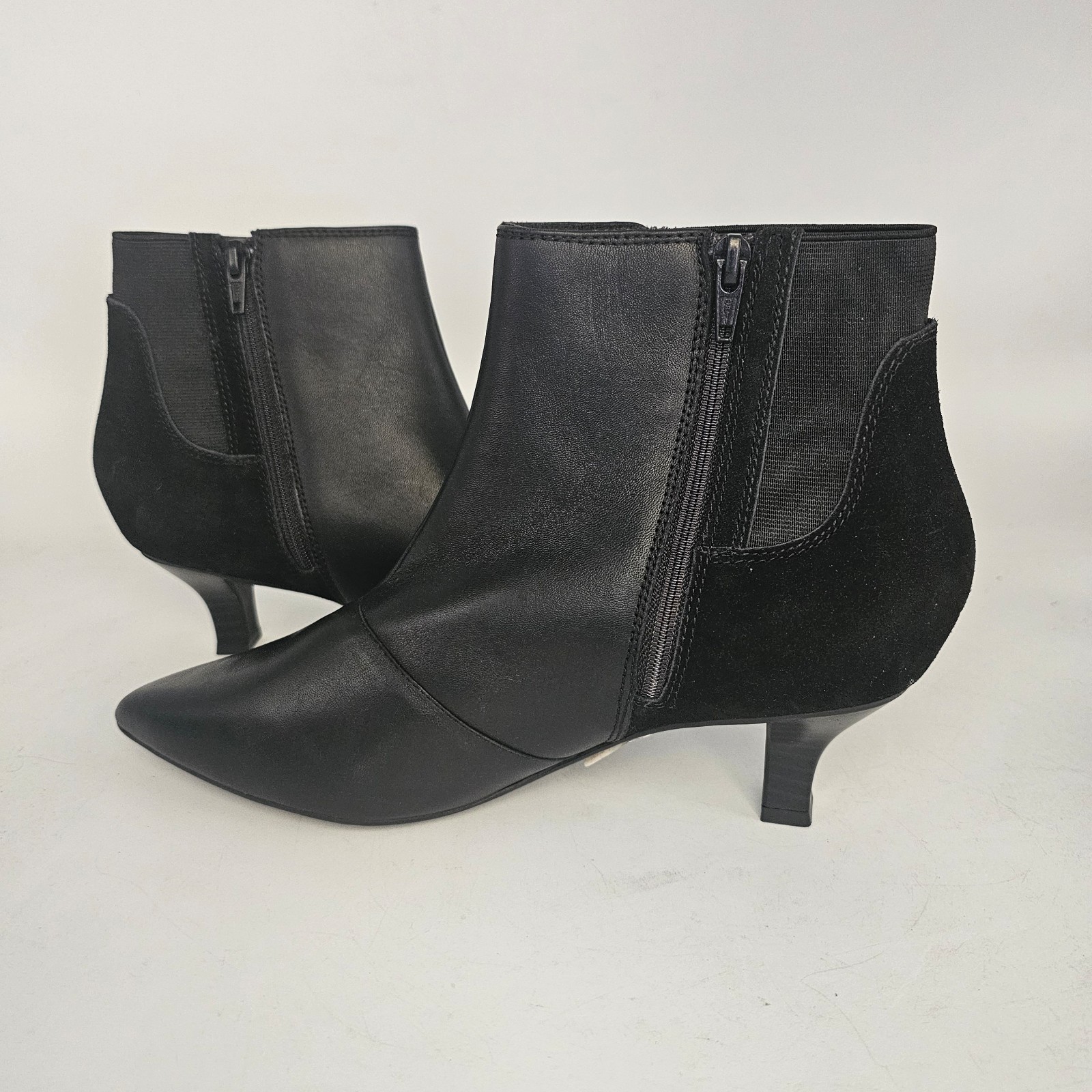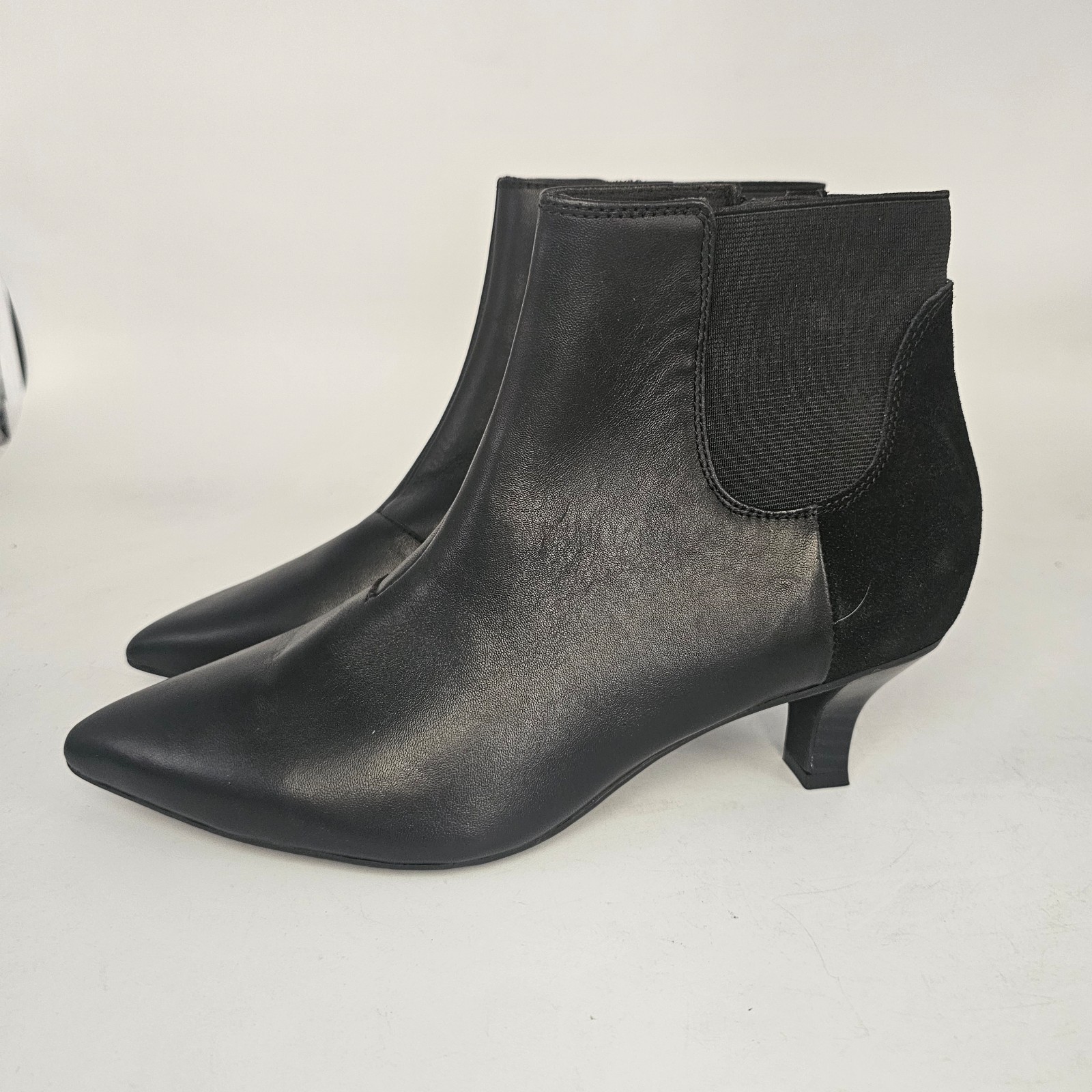 Pointed toe and low stacked 1" kitten heel