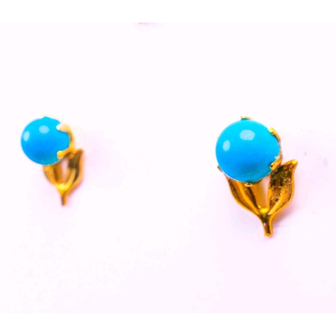 A beautiful pair of earrings to add a pop of color to your ensemble. Vibrant 5mm turquoise gemstones are set in bright 14k yellow gold flower shaped settings for a gorgeous look that is effortless to style.