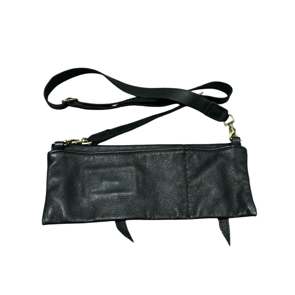Luxury handcrafted black leather crossbody bag by Jas M.B. London Features the signature twin front pockets with flap-and-strap detail, adjustable crossbody strap with brass hardware, and supple premium leather construction. A rare and timeless minimalist piece perfect for everyday wear or travel.