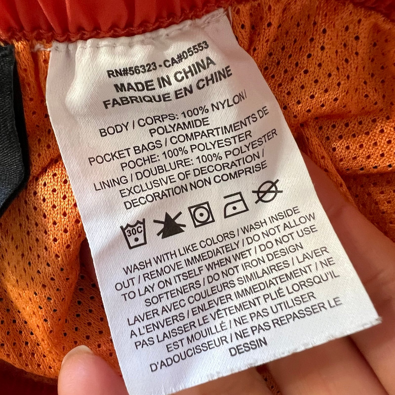 Original Nike Flight Series colorblock shorts — iconic retro Flight logo and bold orange/blue/black panel design. Mesh-lined with adjustable drawstring. Athletic fit with longer leg length (M Tall).