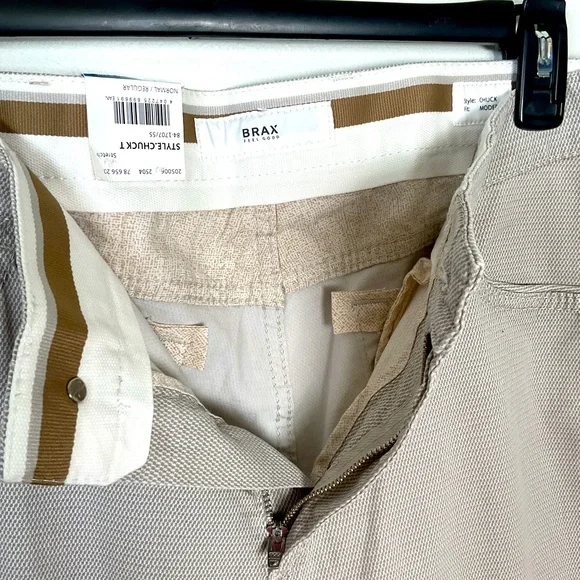 Brax Chuck Triplestone Modern Fit Stretch Cotton Pants NWTSIZE 33/32Cut from signature Triplestone fabric in a cool print, these flat-front chinos offer exceptional durability and comfort in a classic straight-leg fit.• 32" inseam; 14" leg opening; 9 1/2" front rise• Zip fly with button closure• Five-pocket style• 96% cotton, 4% elastane• Machine wash, line dry