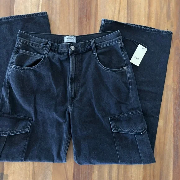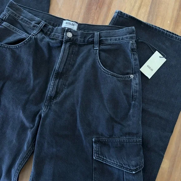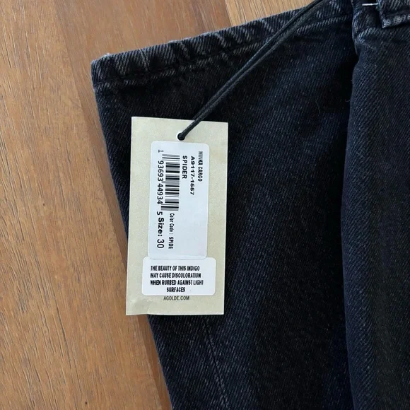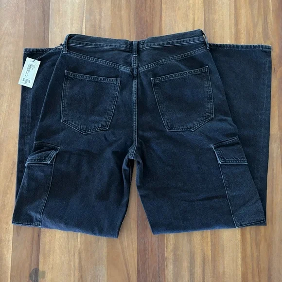 AGOLDE Minka Cargo Jeans - Spider Wash - Size 30Elevate your denim game with these AGOLDE Minka Cargo Jeans in the shade “Spider.” Crafted from premium 80% cotton, including 20% pre-consumer recycled cotton, these jeans offer a structured fit with utilitarian-inspired side cargo pockets for a modern edge.Details:Style: Minka Cargo (A9114-1557)Color: Spider (dark indigo/black wash)Size: 30Made in TurkeyRigid denim – no stretchButton flyStraight wide legHigh riseBrand new with tagsNote: The beauty of this indigo wash may cause slight discoloration when rubbed against light surfaces.