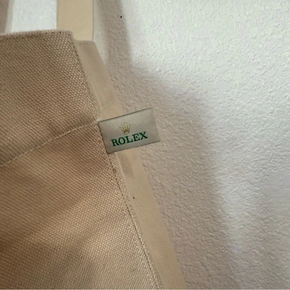 Up for sale is a new Rolex Limited Edition US Open 2023 Tote Canvas, received directly from Rolex from the 2023 event in NYC. The front is beautifully embroidered with the famous Rolex crown. The item shown in the photo is the exact tote you'll receive!Color : Beige Natural Off Whitesize: 40 cm × 38 cm x 12.5 cm15" × 15.5" × 4.5"Handle drop fall: 21.5 cm / 8"
