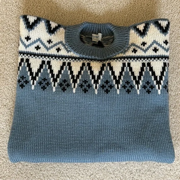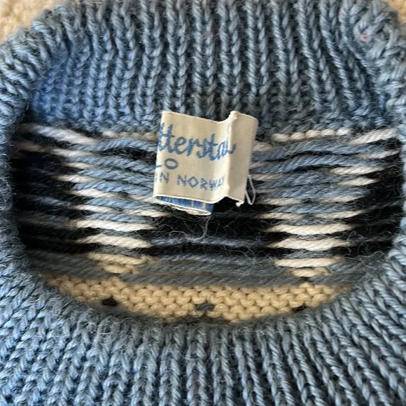 Vintage Lulle Otterstad Sweater Norway • Handmade in Oslo See you slopeside!! Or just look like you’d belong there in this Fair Isle sweater…No materials or care tag but quick search shows most likely 100% wool I am guessing Men’s Large (please see measurements below in the listing and compare to a sweater that fits you.) Manufacturer’s tag is undone on one side. Two stains on right sleeve Couple of “uneven” knitting on front. (See last 3 photos)I have NOT tried to clean this sweater. Approximate measurements taken while garment is flat (see photos) Chest (pit to pit) 21 1/2 inches Length from shoulder seam 27 3/4”Sleeve length 23 inchesShoulder seam to shoulder seam almost 21 inchesFast shipper! Non-smoking home.#ski #vintage #handmade #Norway 🇳🇴⛷️🎿❄️