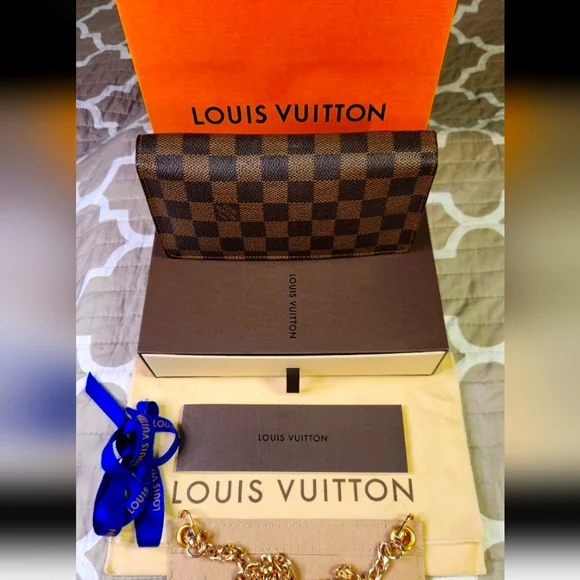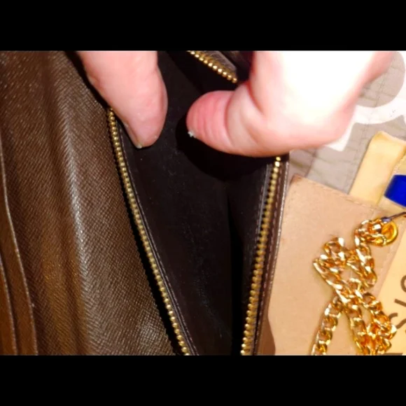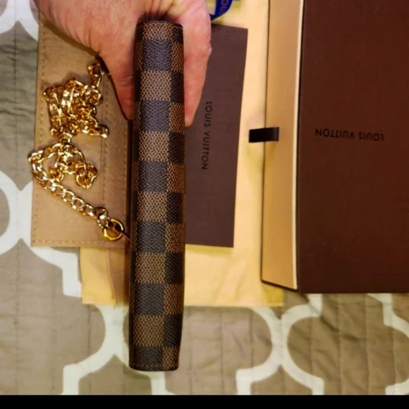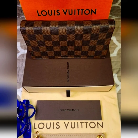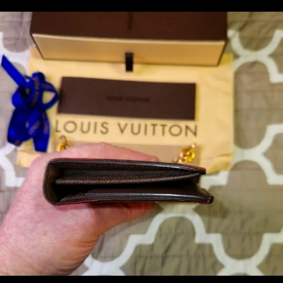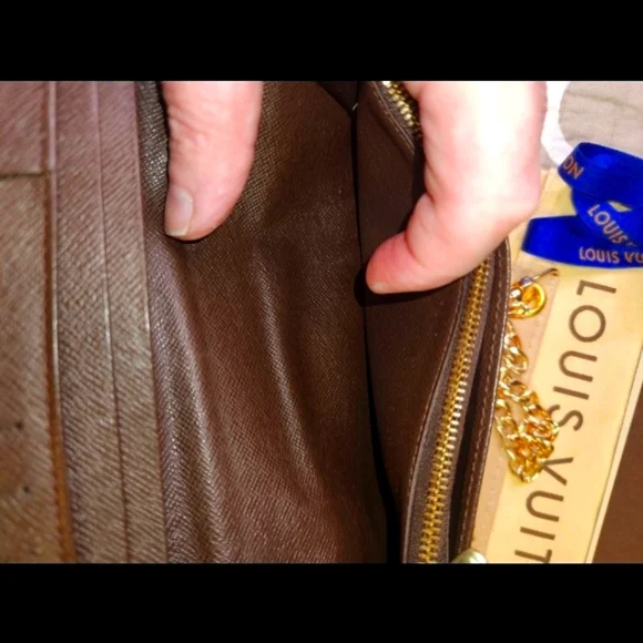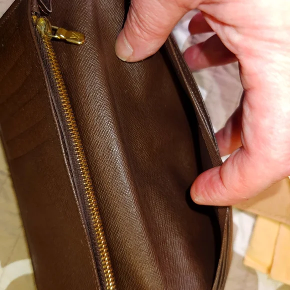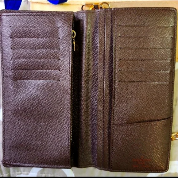 The Louis Vuitton Brazza Wallet in Damier is a vintage accessory featuring a classic check pattern in brown coated canvas. This unisex wallet has a zipper closure, LV logo accents, and includes credit card and checkbook compartments. Made in France, this one-size wallet exudes luxury and style with its timeless design and craftsmanship. Perfect for blending elegance with functionality in any outfit. Measurements are Length : 3.9 inches ,Width : .8 inches, Height is 7.5 inches.This wallet/purse is in very good shape . It has 16 credit card slots with 1 ID or business card slot, 1 large zipper compartment and 4 inside flat compartments for bills and tickets.Lots of extra room.Any questions or need more pictures just ask, not a problem. Thanks for your time, Tc