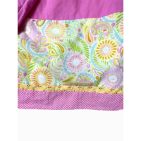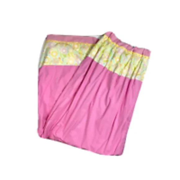 Fast Ship!-----------2 Custom Made Luxury Pinch Pleat Curtains Drapes Pink Lilly Stye Girls HeavyExcellent pre-owned condition--no significant imperfections, with very light, normal evidence of use. Fading on the interior edge of each curtain, which is shown in the photographs provided.A pair of custom, very high end drapes in a pink cotton fabric. Pinch pleat headers, with interior hooks. Fully lined. Very heavy and ample. "Lilly" style, colorful paisley pattern accents at top and bottom. A gorgeous pair!Each panel measures 94" tall x 44-84" wide (top/bottom)c92bg0420