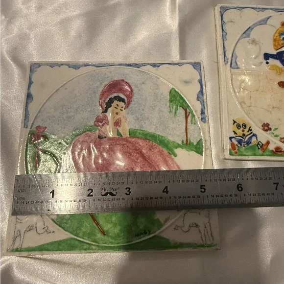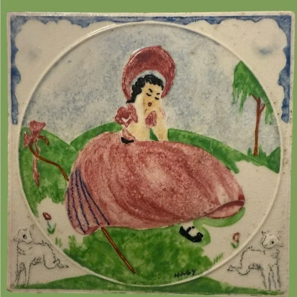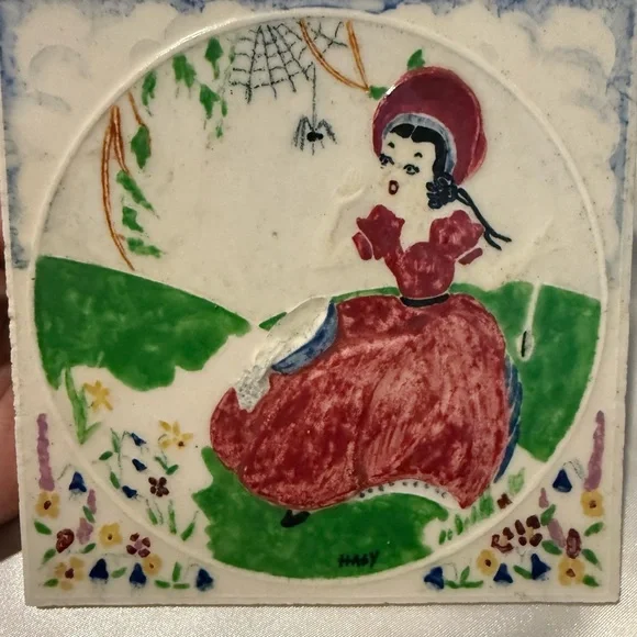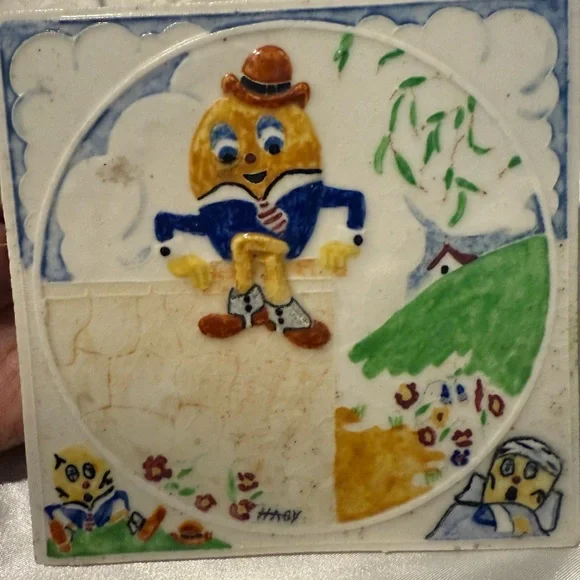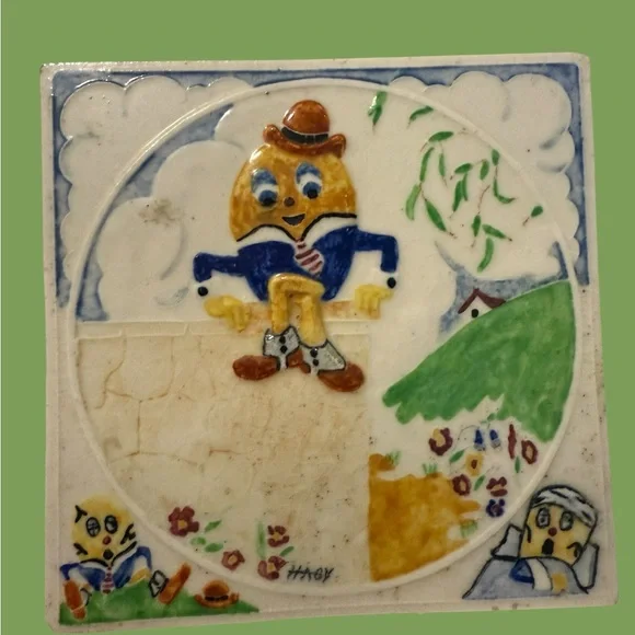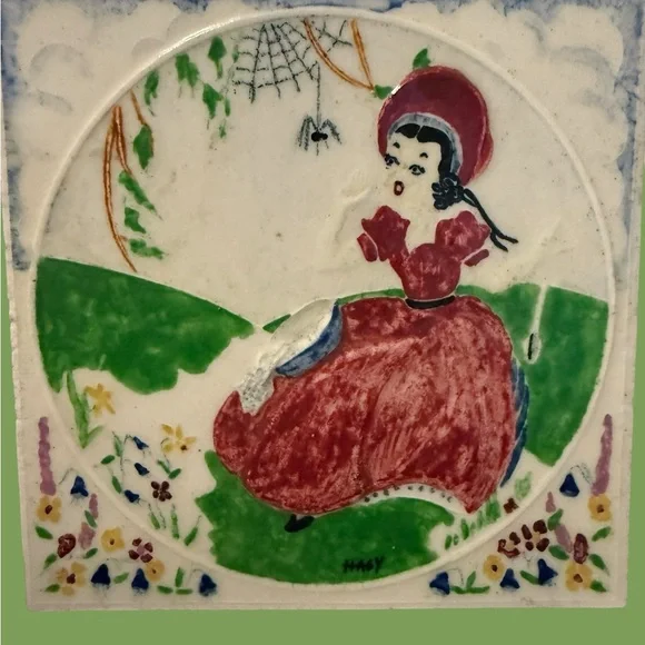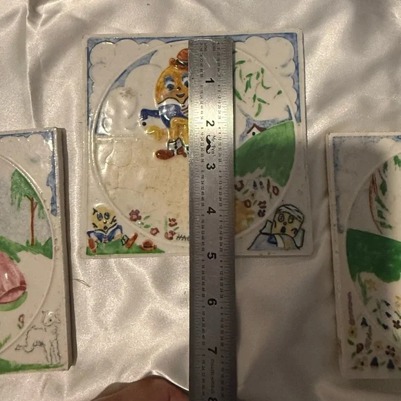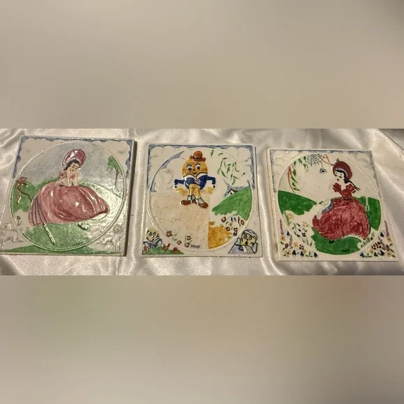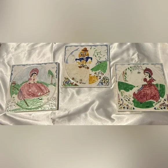 Set Of 3 Nursery Rhyme Tiles, HAGY Ceramic. Bo Peep, Humpty Dumpty, Miss Muffet