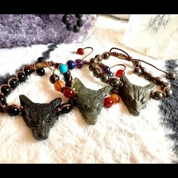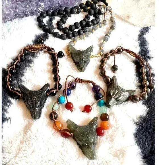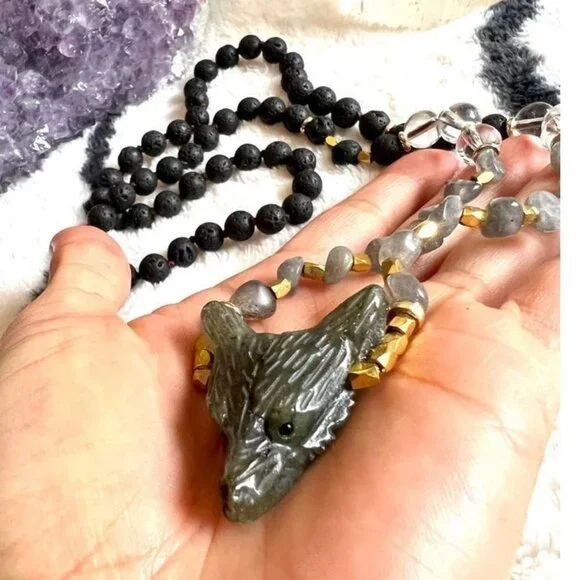 It s adjustable. This is hand carved out of Pyrite (all silver) . I only have a few! Tigers Eye and labradorite necklace also available… So if the wolf is your spirit animal.. snatch it up !Please visit my closet for more magical crystal jewelry! I love to bundle to save on shipping!Pyrite is the crystal of protection, offering an energetic shield that safeguards your mind, body and spirit against negative energy. It brings motion to old, stagnant thoughts and patterns. It loves to unblock stagnant energy. It can also support you in manifesting financial abundance. known as “fools gold” it works as a magnet for attracting wealth.Reiki Meditation Wicca Wiccan Witch Healer Energy Divination Oracle Psychic Medium Spiritual Charm Ritual Starseed Lightworker Metaphysical Third eye Boho Bohemian Hippie Grounding Protection chakra yoga festival moon witchy tarot altar moon quartz amethyst Adventurine onyx tourmaline crystal witchy spirit animal earth earring necklace lotus